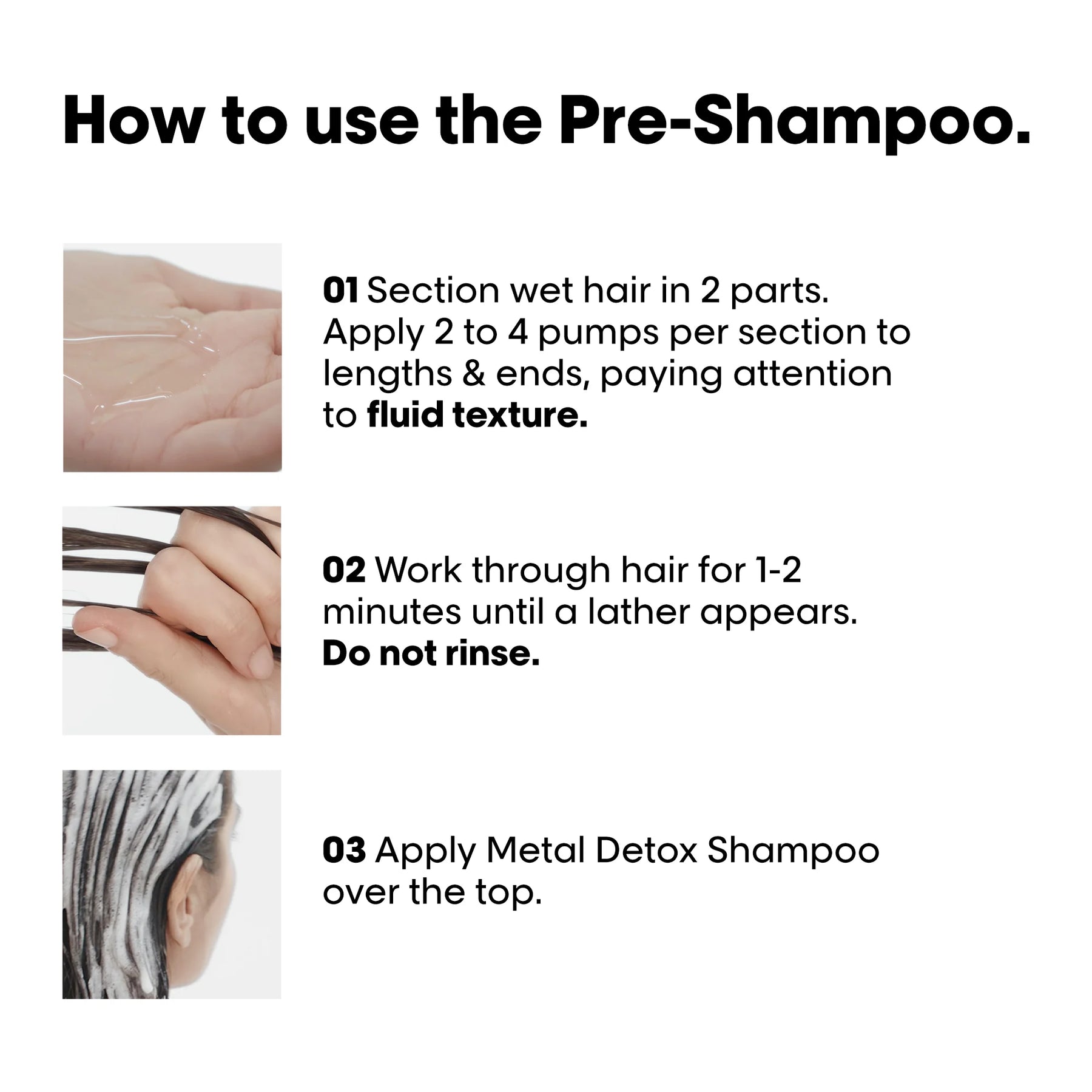 This new pre-shampoo treatment is part of the Metal Detox range, a full anti-metal protocol to help prevent hair breakage & colour fade, providing up to 99% less breakage³ when the full range is used.