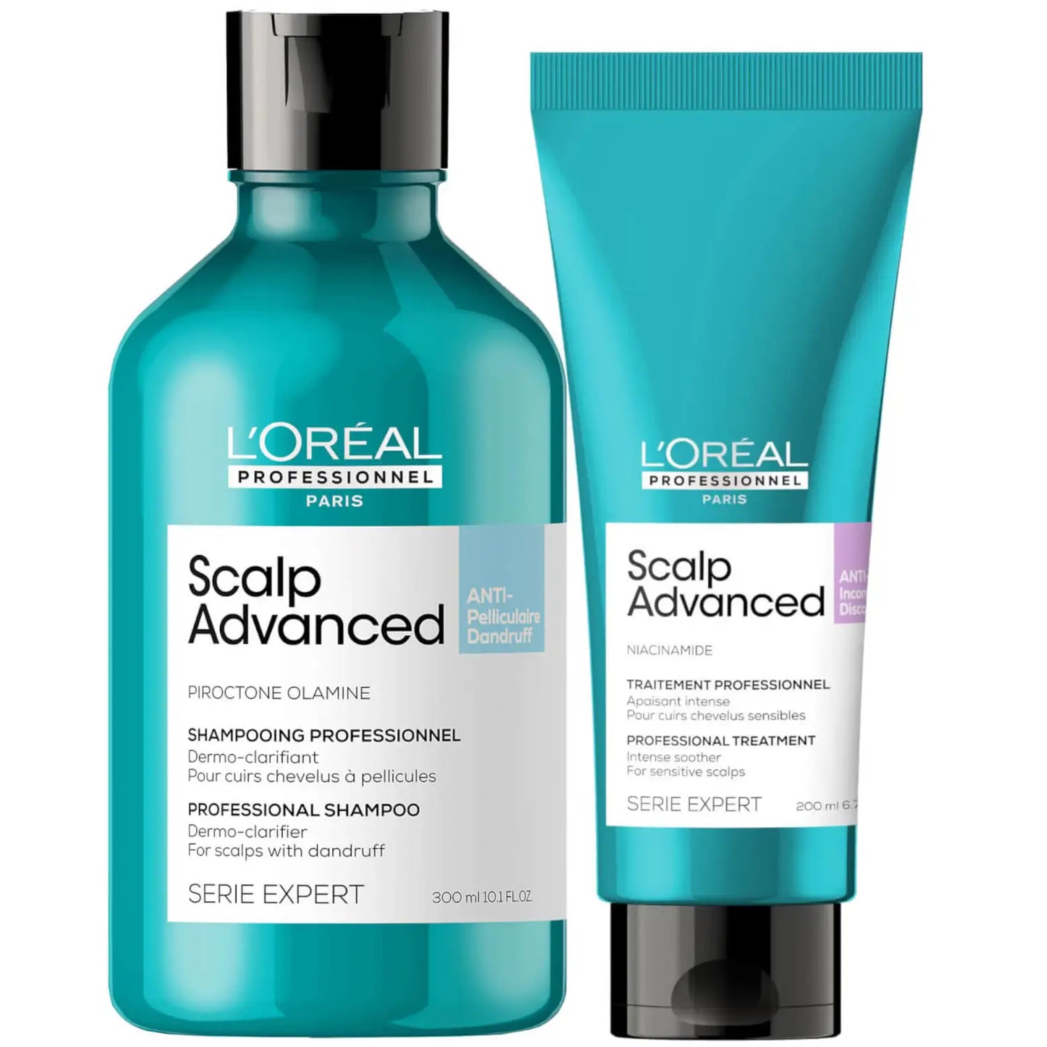 • Developed for those prone to dandruff and dry skin, the Scalp Advanced Anti-Dandruff Shampoo and Hair Treatment Routine by L'Oréal Professionnel Serié Expert features a cleansing shampoo and cooling gel treatment to diminish the look of flakes.